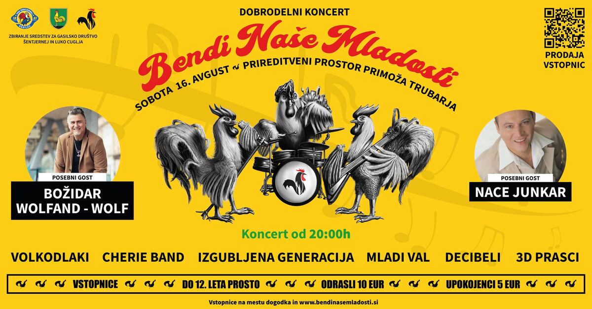 Lepo vabljeni na dobrodelni koncert BENDI NAŠE MLADOSTI 2025, ki bo potekal v soboto, 16. avgusta 2025, ob 20. uri na prizorišču pod prireditvenim šotorom pri Kulturnem centru Primoža Trubarja.