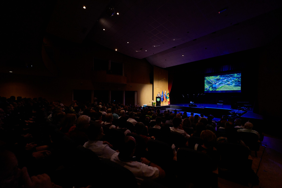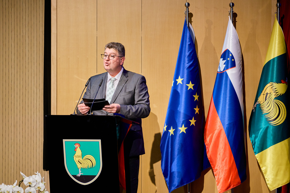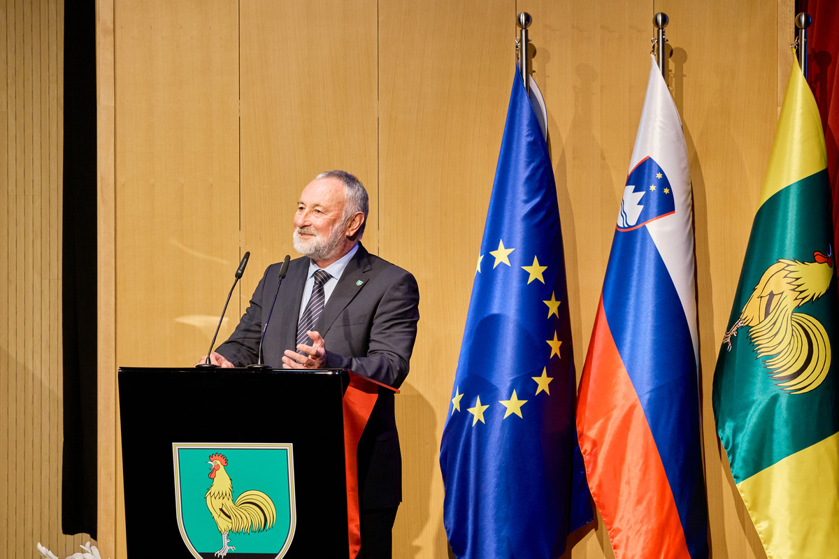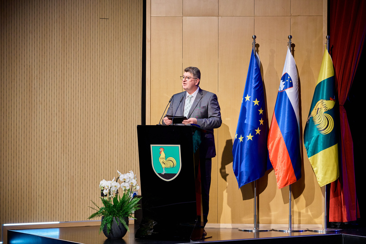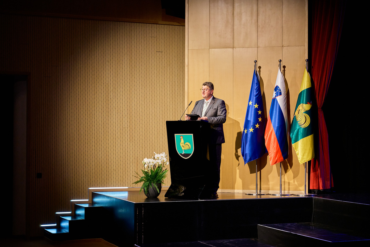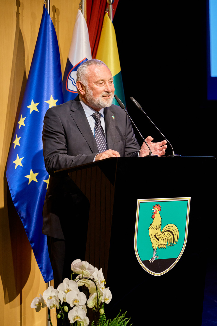 »Živimo v lepem, mirnem in obenem dinamičnem kraju, ponosni smo na svojo dediščino, na svoje iznajdljive in podjetne ljudi, obenem pa želimo biti odprti za nove ideje in nova sodelovanja. Da imamo možnost živeti kakovostno življenje je zasluga številnih ljudi, ki so, in se še, razdajajo za nas in naš kraj. Vesel in ponosen sem, da smo v ekonomskem smislu uspešni, saj tako lahko občanom zagotavljamo dobre pogoje za življenje. Za zadovoljstvo in sožitje pa so ključnega pomena tudi duhovne in kulturne vrednote, kot so spoštovanje, poštenje, solidarnost in strpnost. Slednjih vrednot ni mogoče kupiti, temveč jih je potrebno vedno znova iskati in negovati. To je naša skupna naloga. Nekateri med nami s svojim predanim delom in rezultati izstopate. To ste naši vsakoletni nagrajenci. Iskrena hvala za vaš prispevek k razvoju in kakovosti življenja lokalne skupnosti,« je poudaril župan. V preletu leta je podrobneje orisal glavne naložbe, ki jih je občina opravila v času od zadnjega Jernejevega do sedaj, ter razkril tudi načrte ter investicije, ki so v teku. Ob koncu nagovora je vsem skupaj iskreno čestital ob občinskem prazniku in zaželel lepo praznovanje.