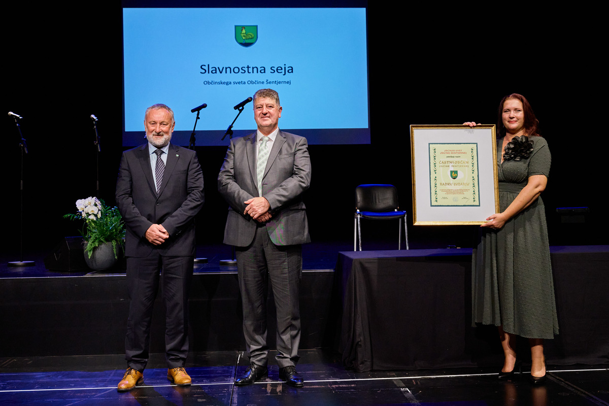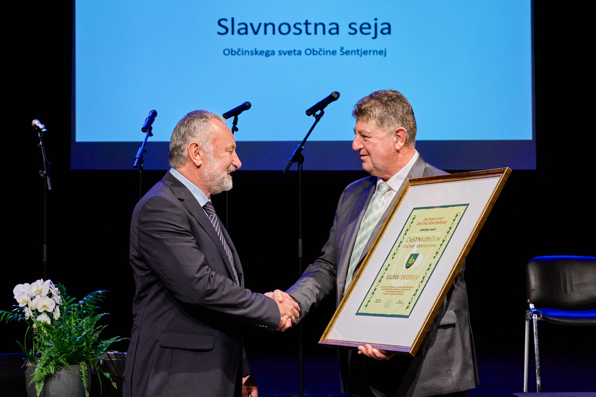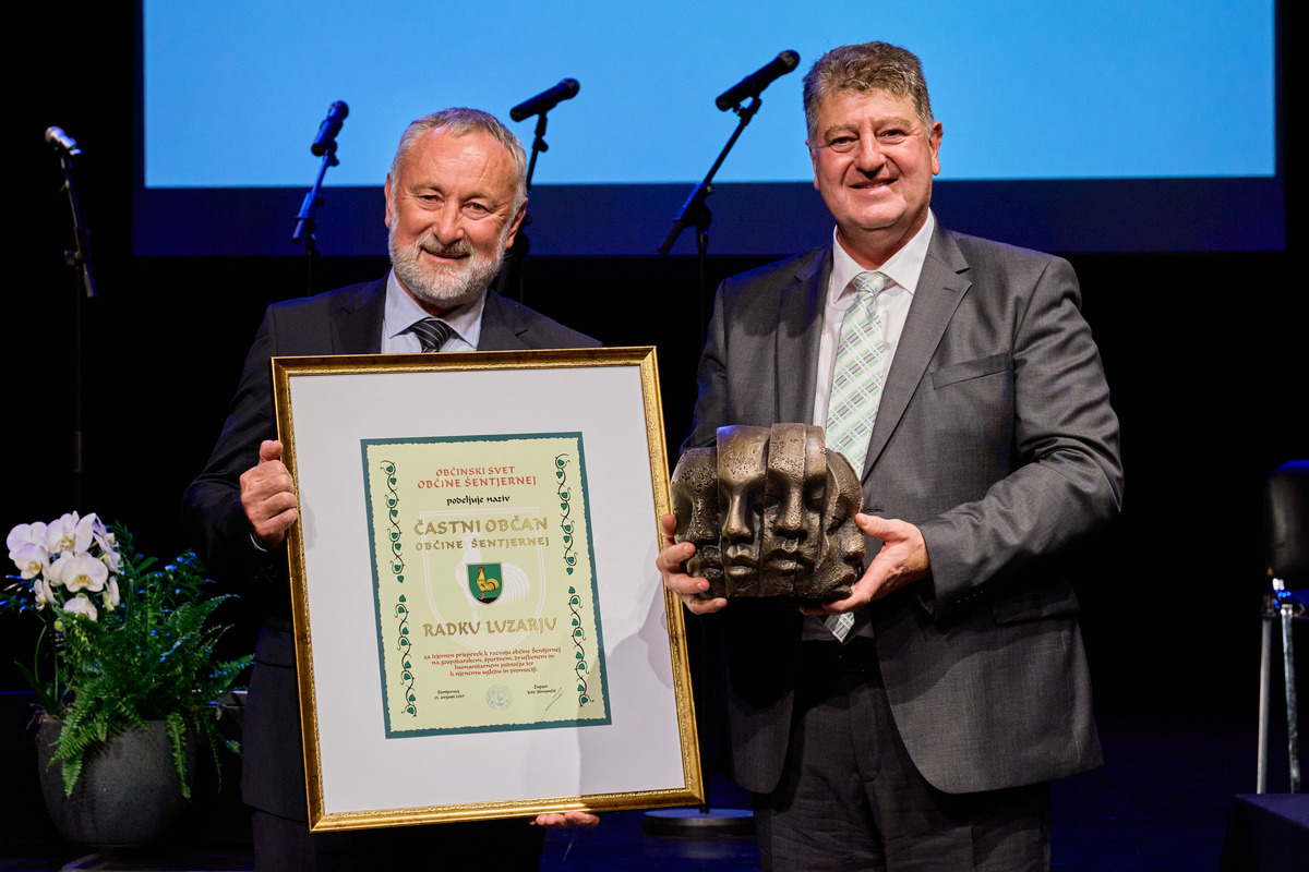 Na slavnostni seji so bila podeljena najvišja občinska priznanja in spominske plakete. Občinski svet Občine Šentjernej je naziv častni občan v letu 2025 podelil Radku Luzarju in sicer za izjemen prispevek k razvoju občine Šentjernej na gospodarskem, športnem, družbenem in humanitarnem področju ter za prispevek k njenemu ugledu in promociji. Častni občan je poleg listine o podelitvi naziva prejel tudi umetniško delo Primoža Puglja »Občan«, ki poudarja človeški obraz in simbolizira pomembnost vsakega posameznika. V nagovoru se je novi častni občan predlagateljem in občinskemu svetu zahvalil za prejeti laskavi naziv.