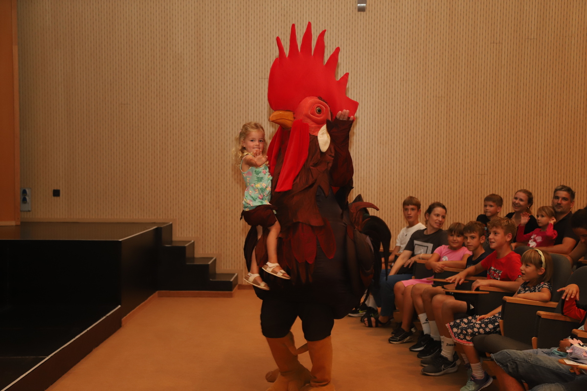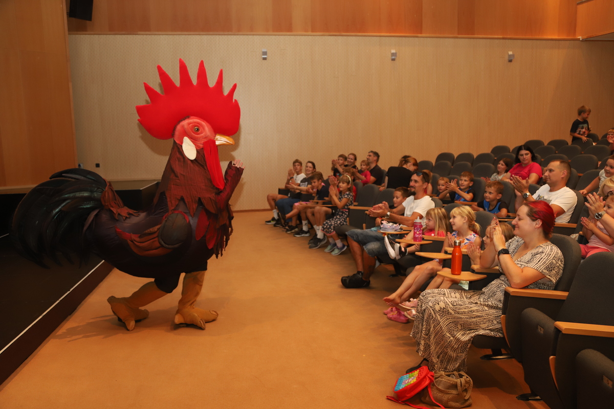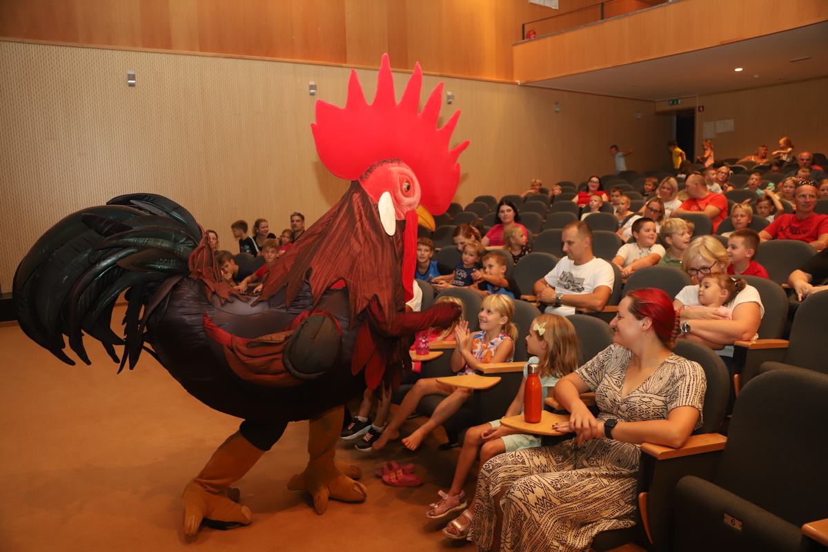 Številni otroci, ki jih je pred ogledom filma obiskal in zabaval tudi petelin Jernej, so se ob koncu filma posladkali s sladoledom.