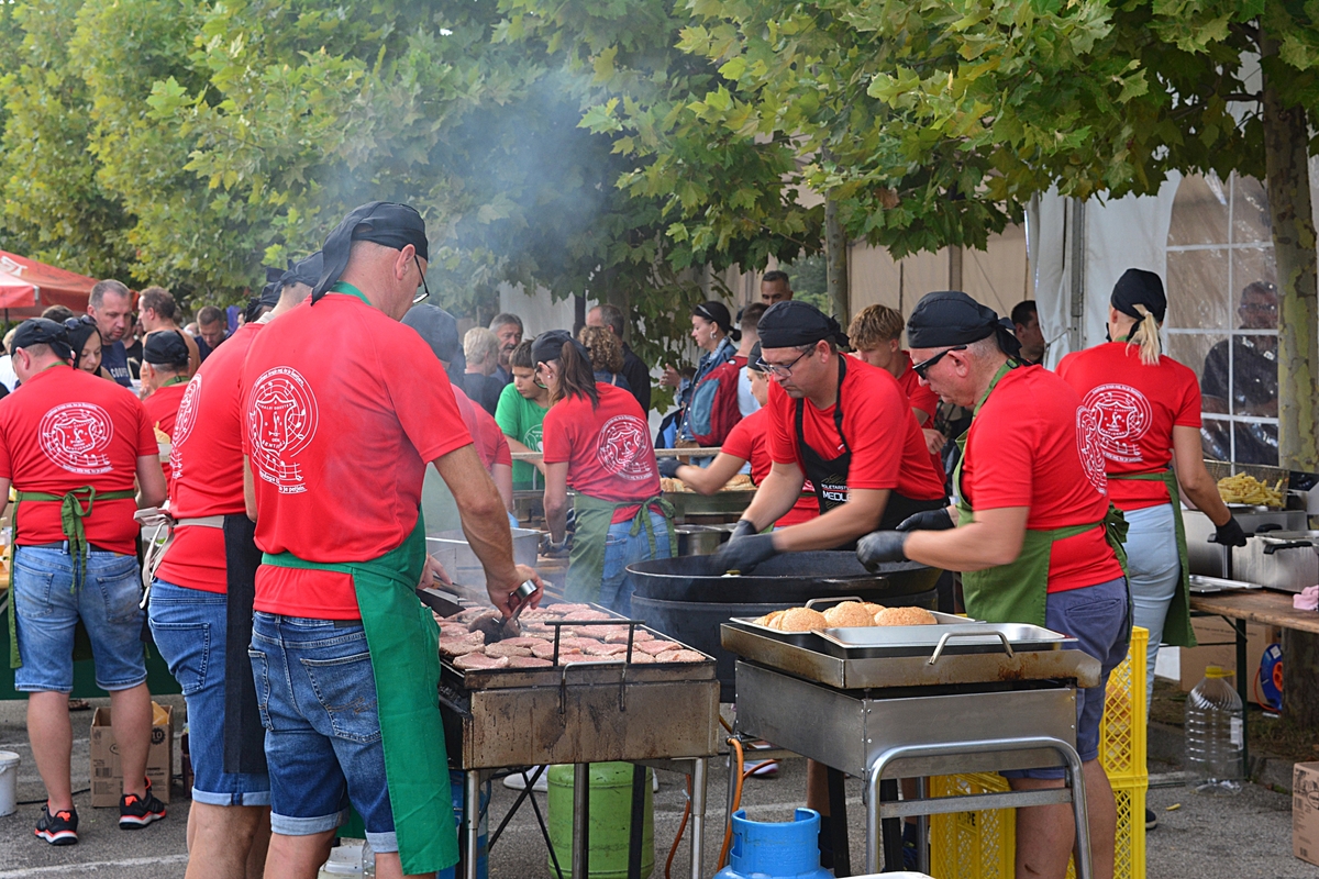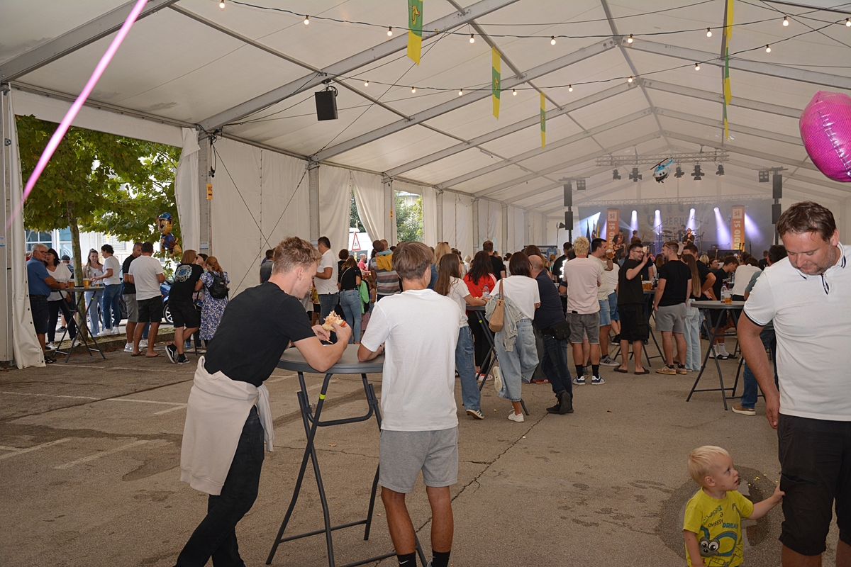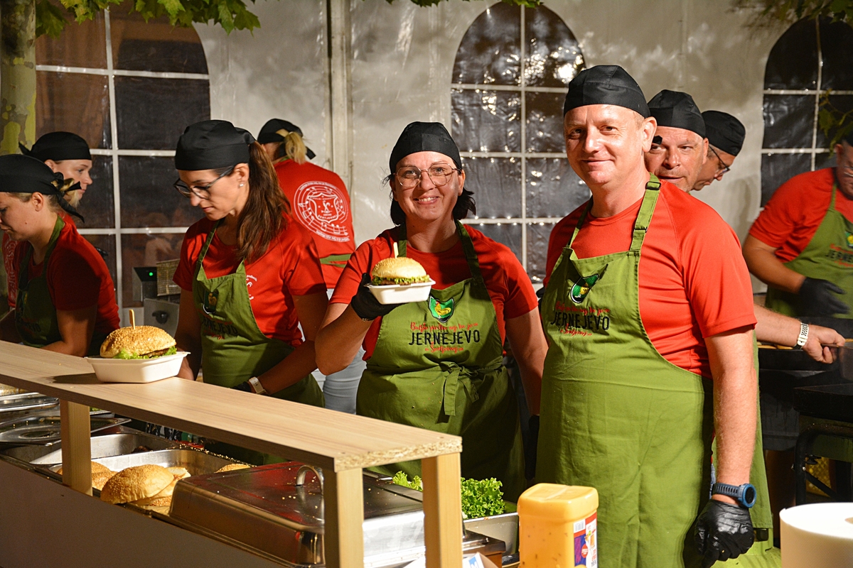 Dogajanje pod prireditvenim šotorom pri Kulturnem centru Primoža Trubarja je privabilo številne obiskovalce, ki so uživali ob odlični kulinariki in glasbi. Za sveže pripravljene burgerje in hladno pivo je tudi letos poskrbela uigrana ekipa Pihalnega orkestra Občine Šentjernej, ki je tokrat svoje inštrumente zamenjala za kuhalnice – in tudi te vihtela z enako mero spretnosti in entuziazma.