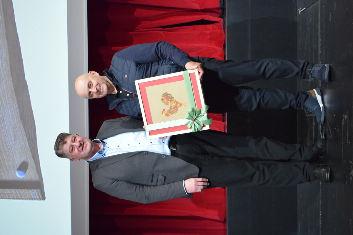 Proti koncu je vse zbrane nagovoril župan občine Šentjernej Jože Simončič, ki se je zahvalil društvu in članom za aktivno udejstvovanje v občini ter izven nje, ob tej priložnosti pa je društvu podaril sliko šentjernejskega petelina, delo domače slikarke Jožice Medle.