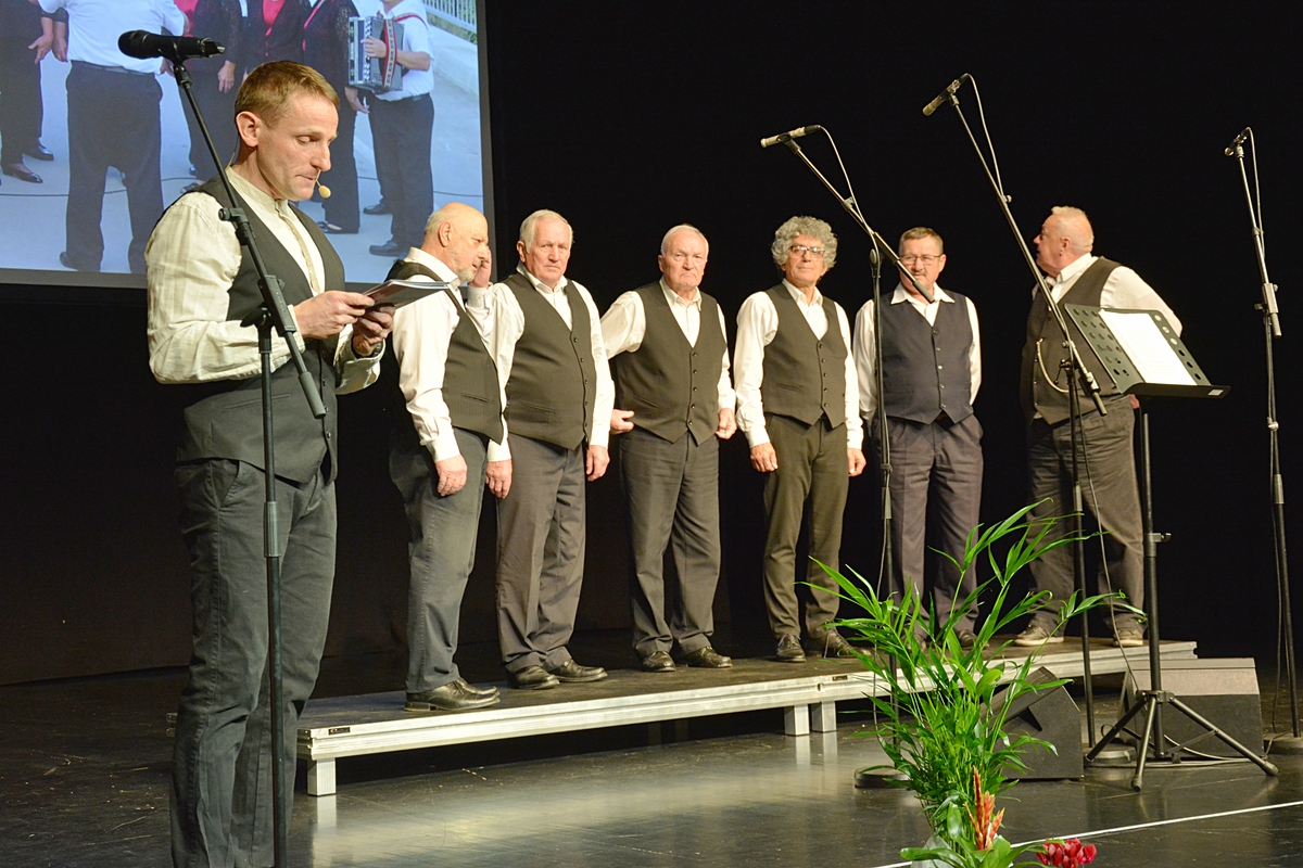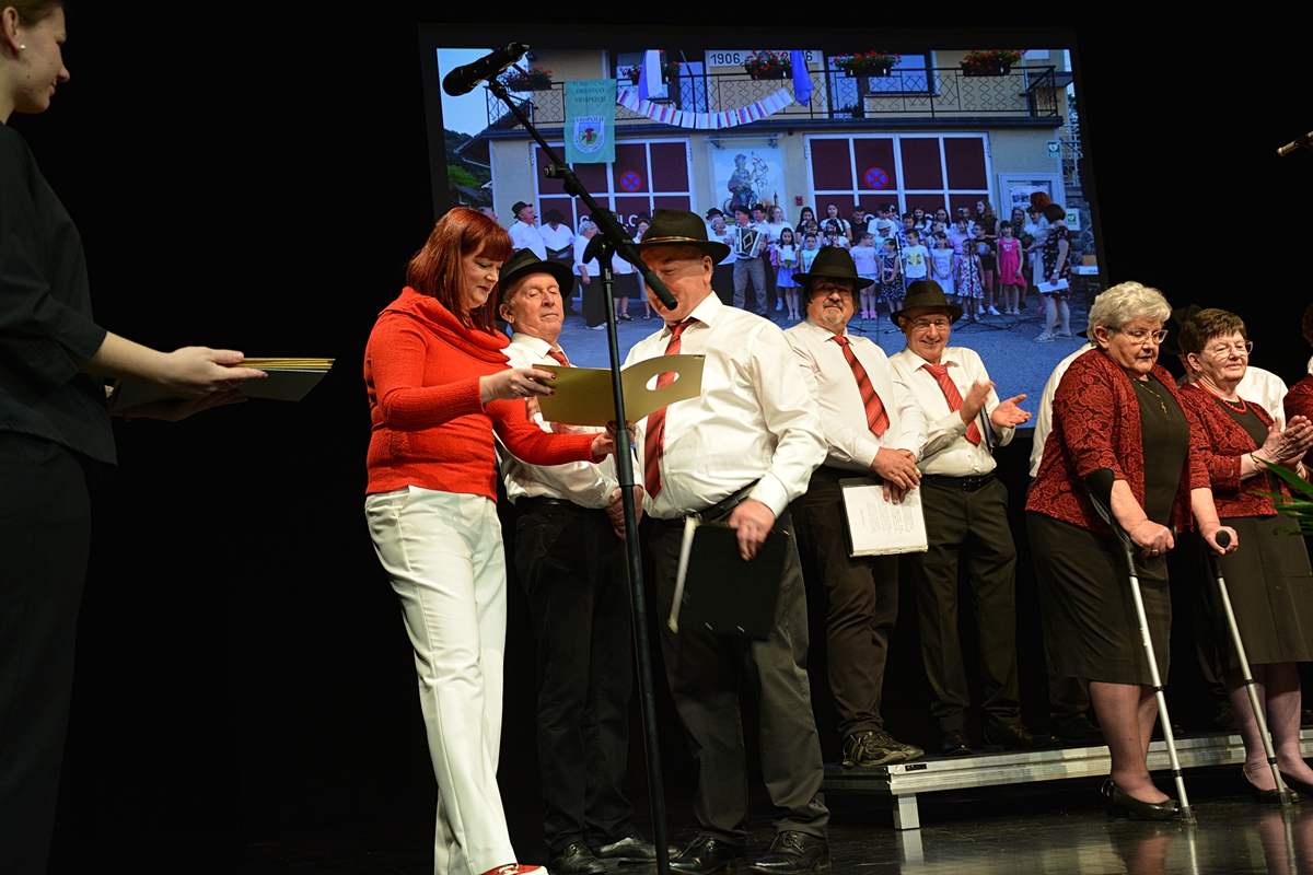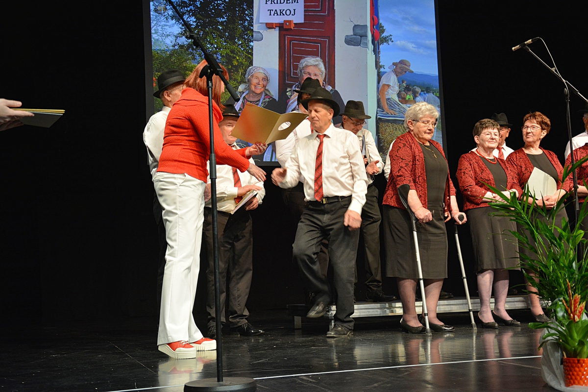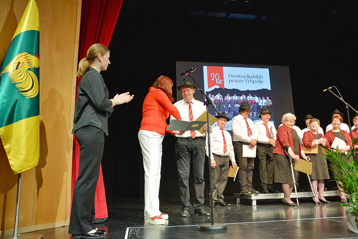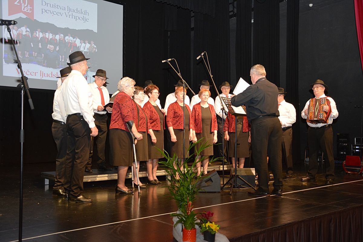 Prireditev so pričeli z uvodno pesmijo Vaška, v kateri so opevali lepote vasi Vrhpolje ter njene pridne, delovne in vesele Vrhpoljčane. Pod vodstvom zborovodje Franca Veglja in s harmonikarjem Tonetom Grubarjem Ljudski pevci Vrhpolje obujajo ljudsko pesem, ki je bila nekdaj znana pod Gorjanci. Poleg tega, da vaja dela mojstra tudi v petju, jih pesem poveže in se njihova druženja zavlečejo pozno v noč. Rojstni dnevi, godovi, lokalni prazniki ali pa kar tako … za dober večer ali pa lep dan … vedno najdejo razlog za praznovanje in veselo druženje, ob katerih pa lepa slovenska ljudska pesem najde svoj pomen in zato še lepše zveni. To je poslanstvo Ljudskih pevcev Vrhpolje, ki v prvi vrsti pojejo za svojo dušo in za veselje v družbi, smo slišali na prireditvi, ki jo je vodil Marko Gorenc in je v dvorano poleg odmevne slovenske zakladnice ljudskih pesmi, doprinesel še več energije.
