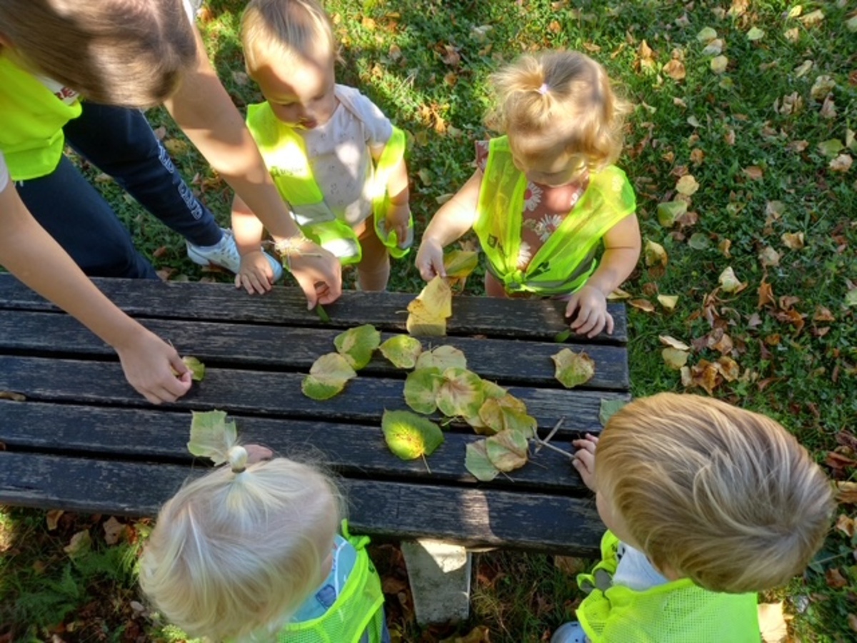 Sprehodili smo se tudi do gozda in znamenite »turške lipe«. Na poti smo opazovali naravo in živali na pašniku. Nabrali smo jesensko listje. Slednje smo uporabili pri ustvarjanju in z njim naredili jesensko drevo.