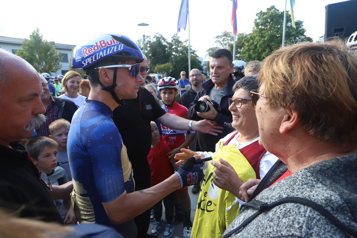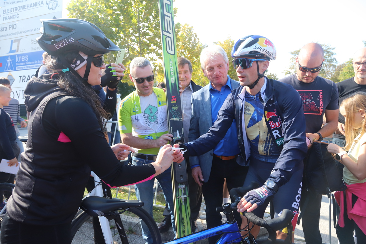 S petkratnim zmagovalcem tritedenskih dirk in olimpijskim prvakom se je na kolesarjenje podalo okoli 400 kolesarjev, ki jih pot vodila skozi Stražo, center Novega mesta, Otočec, Drago, Gorenji Maharovec do postanka v Šentjerneju ter v nadaljevanju čez Otočec in Trško Goro nazaj v Novo mesto.