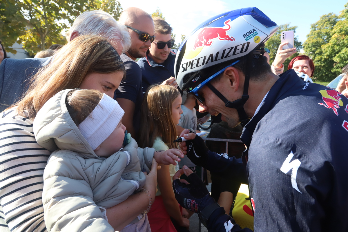 Na sončno jesensko nedeljo, 12. oktobra 2025, se je dobrodelna kolesarska karavana Zlati krog s Primožem Rogličem podala na 62,5 km dolgo pot izpred Olimpijskega centra Novo mesto.
