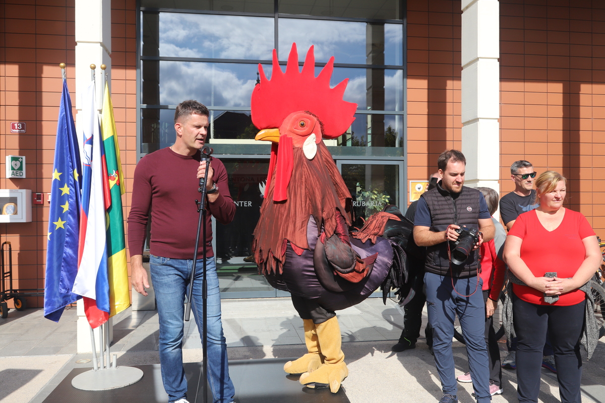 Po prisrčnem nagovoru Primoža Rogliča je zbrane pozdravil šentjernejski podžupan, Jože Vrtačič, ki je nanizal številne uspehe olimpijskega prvaka in mu ob tej priložnosti podaril simbol občine Šentjernej, glinenega petelina. Društvo kmetic Šentjernej pa je Primoža razveselilo z velikim rogljičkom, ki ga je takoj tudi poskusil.