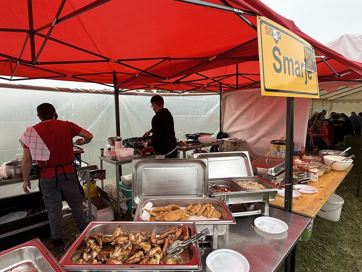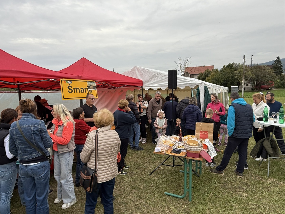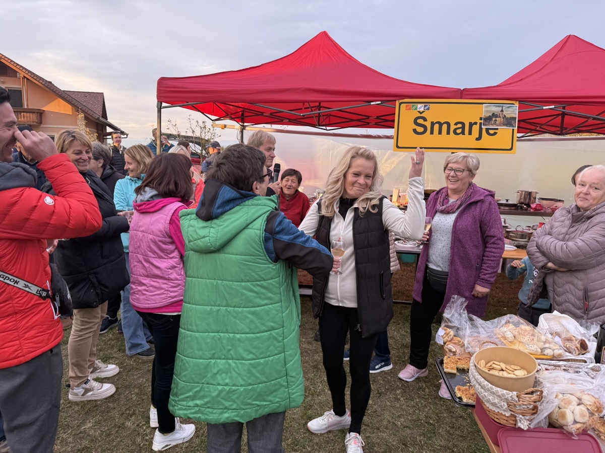 V začetku oktobra smo Šmarčani ponovno zbrali našo vas na 4. srečanju vaščanov. Letos se nas je udeležilo približno 130 odraslih in 30 otrok. Prizorišče, postavljen šotor in veselo vzdušje so nas pričakali sredi vasi na travniku.