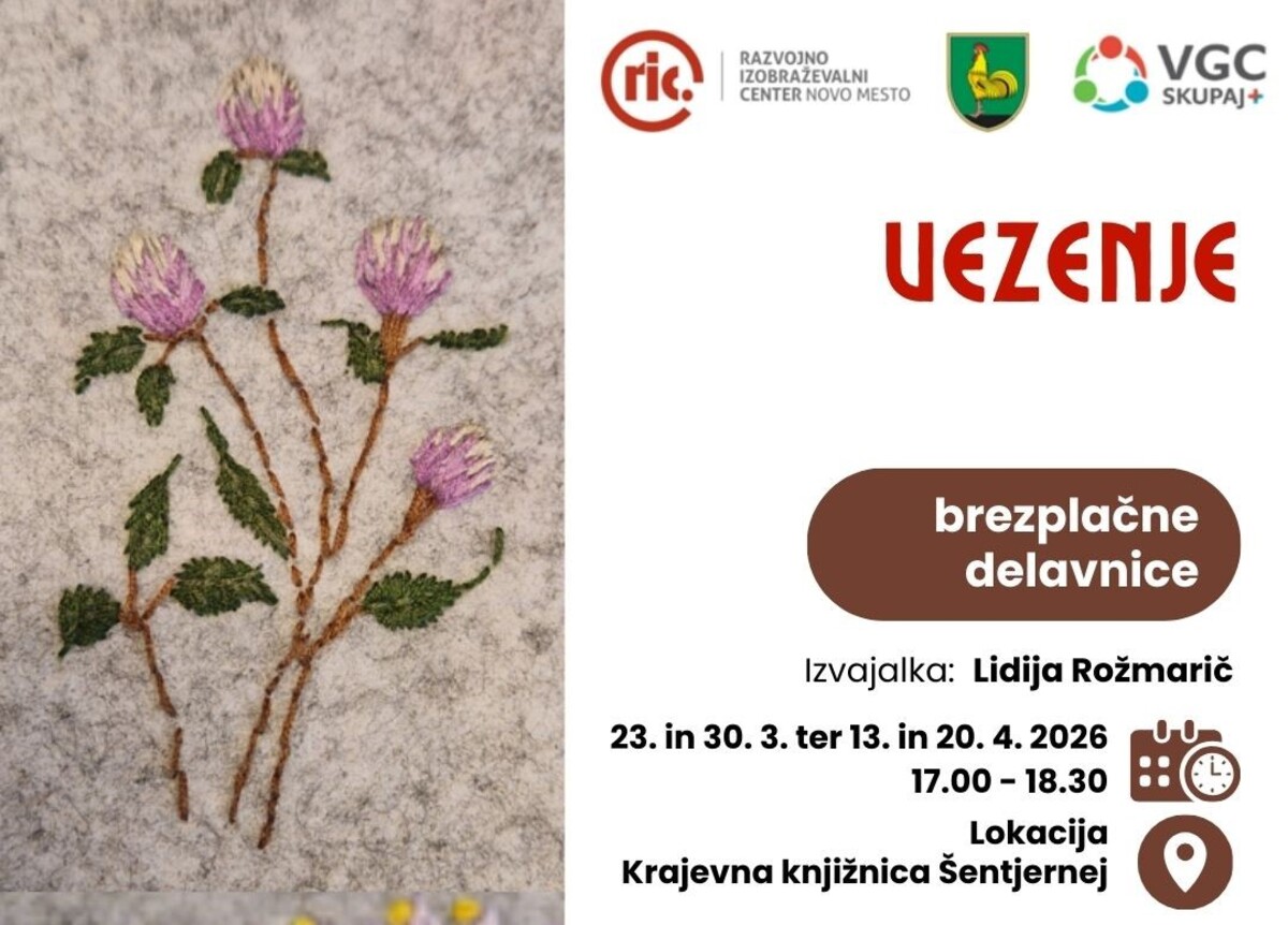 RIC Novo mesto in VGC SKUPAJ + vabijo na brezplačne delavnice VEZENJE, ki bodo potekale: