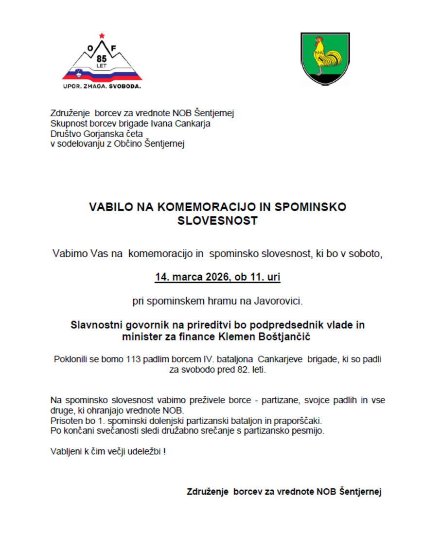 Komemoracija in spominska slovesnost na Javorovici