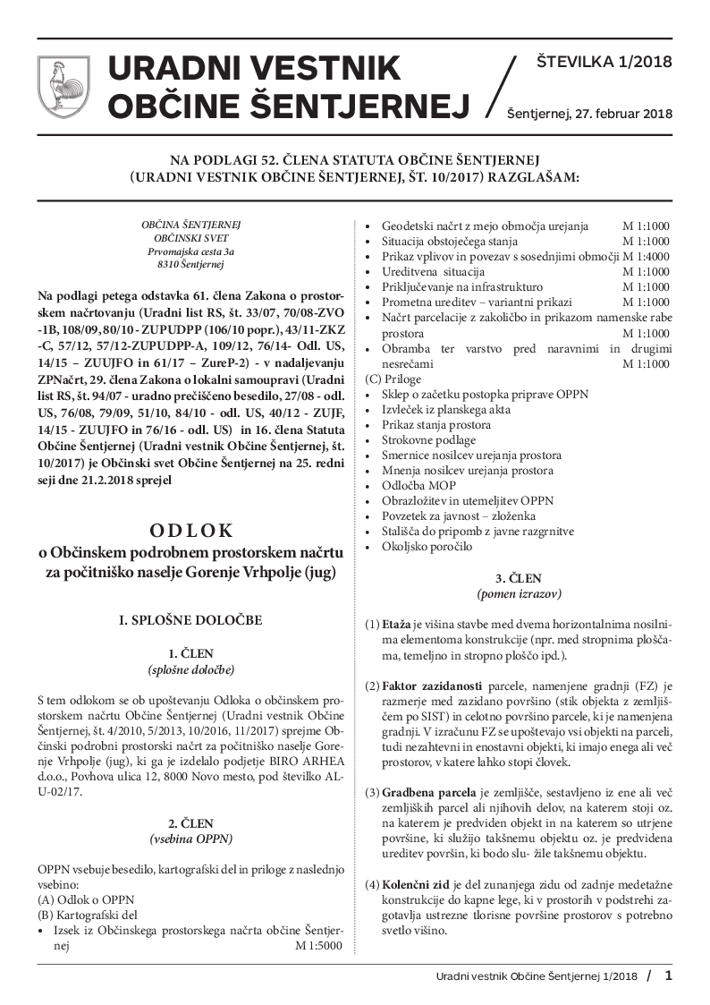 Odlok o Občinskem podrobnem prostorskem načrtu za počitniško naselje Gorenje Vrhpolje (jug) (GVR10-T,OPPN, delni OPPN) (Uradni vestnik, št. 1/2018)