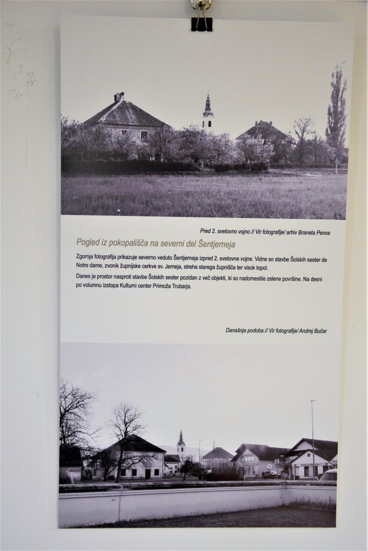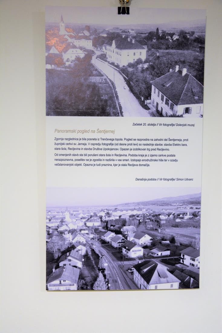 Ob letošnjem kulturnem prazniku so se v sredo, 5. februarja 2020, v okviru projekta Včasih naši učenci, danes umetniki, ki ga Osnovna šola Šentjernej pod mentorstvom likovne pedagoginje Darje Kovačič že vrsto let uspešno udejanja, z arhitekturno razstavo Kolaži trškega jedra – neznane podobe Šentjerneja predstavili arhitekti Andrej Bučar, Darko Homan in Matej Kerin. Avtorji razstave predstavljajo znane in manj znane fotografije trškega jedra Šentjerneja in jih skozi tehniko kolaža postavljajo v nove podobe, s čimer nastavljajo zrcalo današ-njemu stanju v kraju in hkrati izražajo ideje in možnosti za njegov razvoj v prihodnosti.