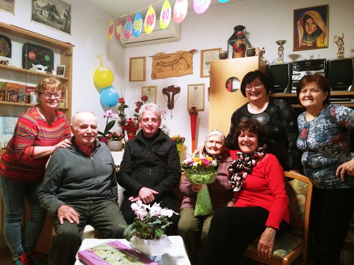 Ob njenem prazniku pa so jo poleg domačih obiskali, in ji zaželeli še veliko zdravih in zadovoljnih let, podžupan Občine Šentjernej s sodelavko, predstavnici krajevne organizacije Rdečega križa, predstavniki Društva upokojencev Šentjernej in prijatelji. Obiska je bila zelo vesela in ob prisrčnem kramljanju je čas hitro minil. Ob odhodu so ji obljubili, da jo prihodnje leto zopet obiščejo.