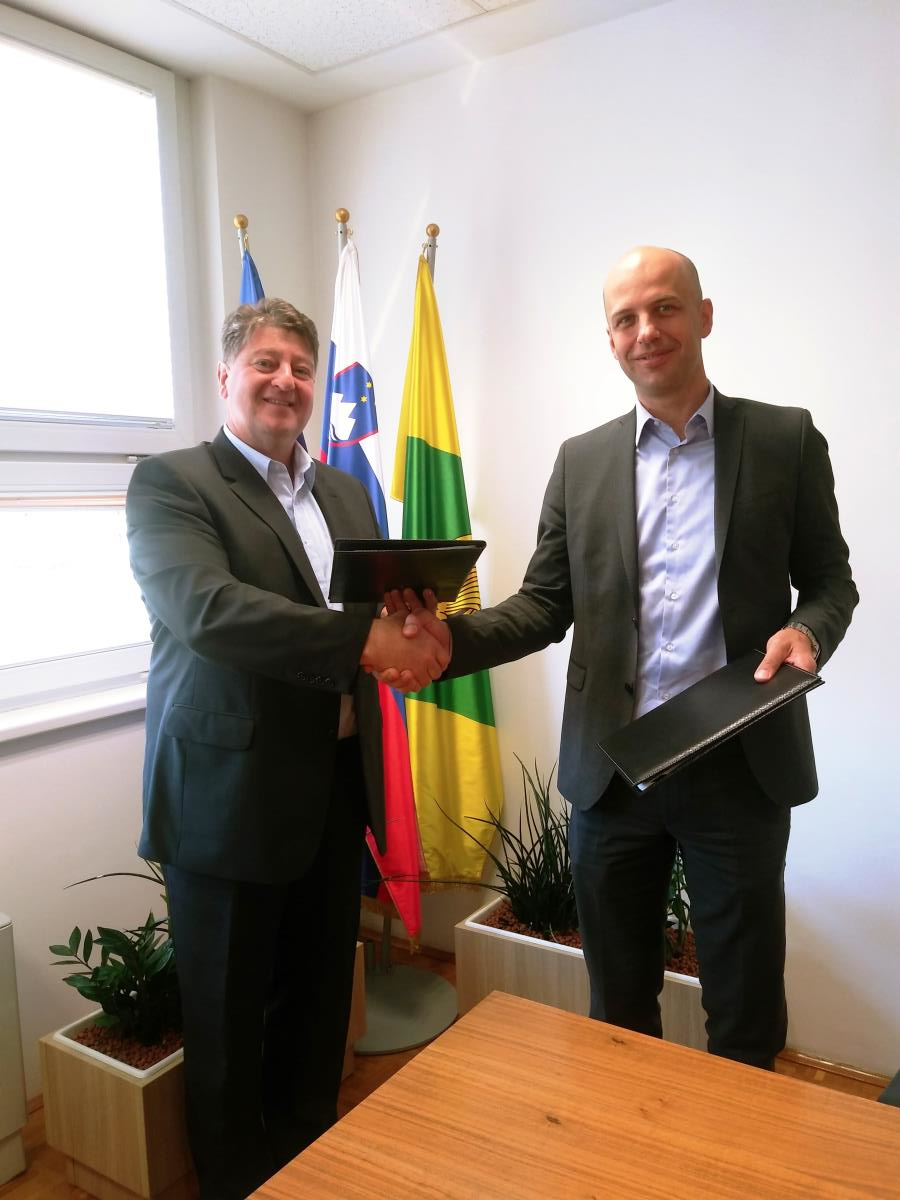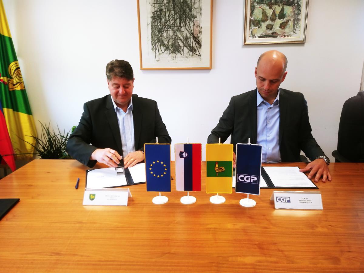 V sredo, 27.5.2020, sta v prostorih Občine Šentjernej Jože Simončič, župan Občine Šentjernej in Martin Gosenca, predsednik uprave CGP d.d., podpisala pogodbo za rekonstrukcijo lokalne ceste Šmarje - Pleterje (2. faza).