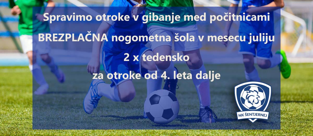 V klubu NK Šentjernej imamo interni projekt "Spravimo otroke v gibanje". S tem načelom organiziramo med počitnicami, v mesecu juliju, "Brezplačno šolo nogometa za vse otroke". Šola poteka cel mesec, 2-krat na teden, na nogometnem igrišču v Šentjerneju. Pa je šola samo za nogometaše? Ne, šola je za vse otroke, ne glede na znanje nogometa, ki si želijo gibanja in druženja s sovrstniki. Lahko se pridružijo malčki ali pa prekaljeni mački, fantje in deklice. Primerna je tako za predšolske otroke, kot za starejše otroke. Otroke razdelimo v skupine, glede na starost in znanje, potem pa izvajamo različne treninge z žogo, športnimi rekviziti in igro. Trenerji jih probajo motivirati skozi igro, pokažejo osnovne tehnike in jim dajo izzive, da je otrokom zanimivo. Ne igra se samo nogomet, gre se bolj za igre z žogo, vadbe in na koncu pa še nagrada – nogomet in sladoled :-) Cilj pa je napolniti igrišče z otroškim vrvežem in smehom.