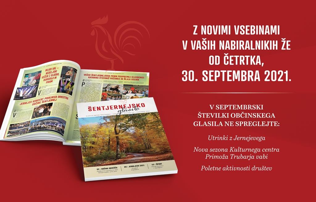 V četrtek, 30. septembra 2021, beremo novo številko Šentjernejskega glasila