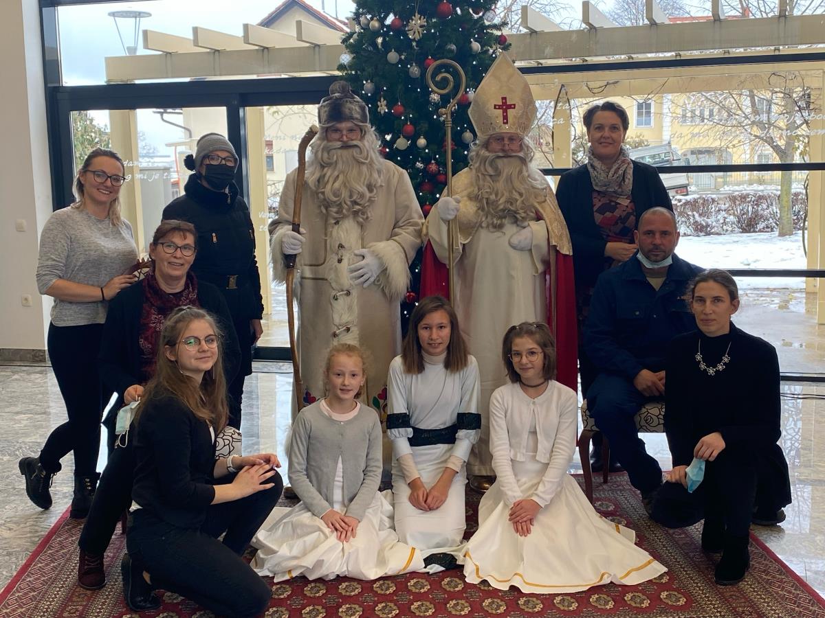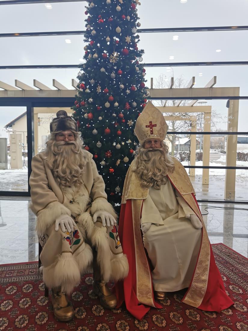 V soboto, 11. decembra 2021, sta se s šentjernejskimi otroci in njihovimi starši srečala sveti Miklavž in dedek Mraz v spremstvu snežink.