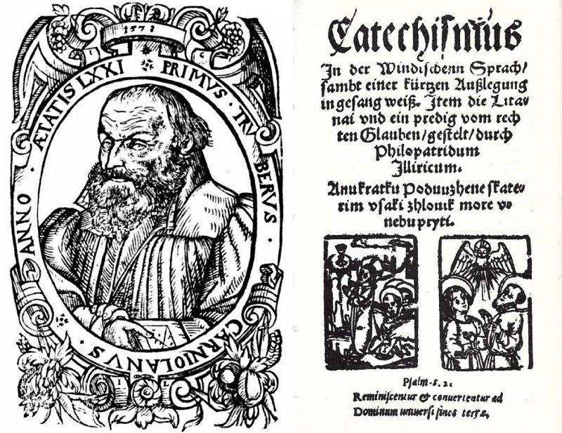Trubar, ki je avtor prvih knjig natisnjenih v slovenskem jeziku, Katekizma in Abecednika iz leta 1550, je Katekizem izdal pod psevdonimom »ilirski domoljub«. Njegovo 260 strani dolgo delo je nastalo v Rothenburgu ob Tauberi, leta 1550 pa je brez imena in letnice izšlo pri tiskarju Petru Frentzu v mestu Schwäbisch Hall. V Katekizmu je Trubar svoje rojake prvič v zgodovini imenoval Slovenci in slovenščino utemeljil kot knjižni jezik. Skupaj s Katekizmom je objavil tudi Abecednik, ki je bil namenjen preprostemu ljudstvu kot pripomoček za učenje branja.