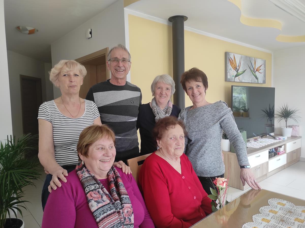 Na res sončen in topel pomladni dan nas je pričakala pri hčerki, kjer sedaj živi. Pri njej smo poklepetali in obudili veliko lepih spominov na minula leta. Kljub temu, da se dvakrat tedensko vozi v bolnišnico na zdravljenje, gleda na življenje s pozitivne strani in se veseli, da je vsaj prej, dokler je še lahko hodila, večkrat šla na izlete in si marsikaj ogledala. Tudi zato nam je po voščilu članic in predsednika DU Šentjernej ter prostovoljk Rdečega križa Šentjernej zaupala, da je treba izkoristiti in potovati naokrog dokler lahko, ker boste na stara leta doma.