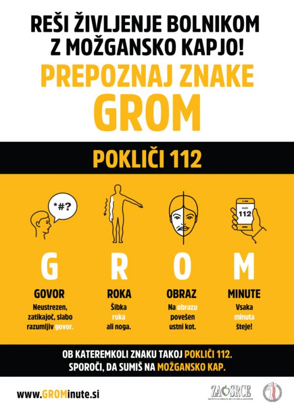 Najbolj preprosto in zanesljivo prepoznamo znake kapi s pomočjo besede GROM: