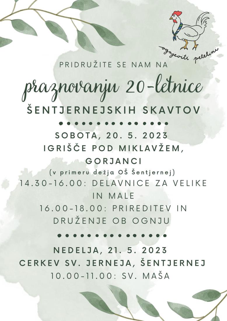 Šentjernejski skavti sporočajo, da bo praznovanje 20-letnice njihovega delovanja,