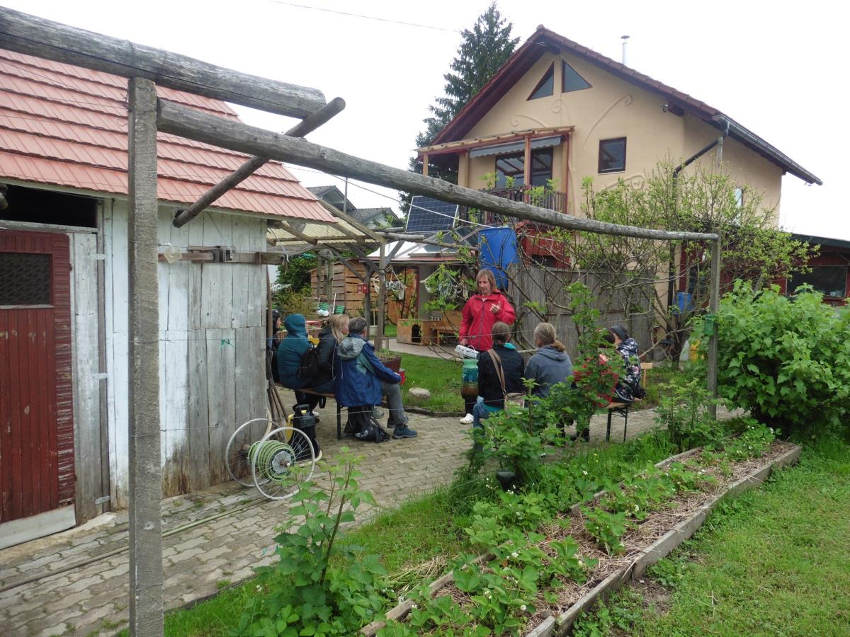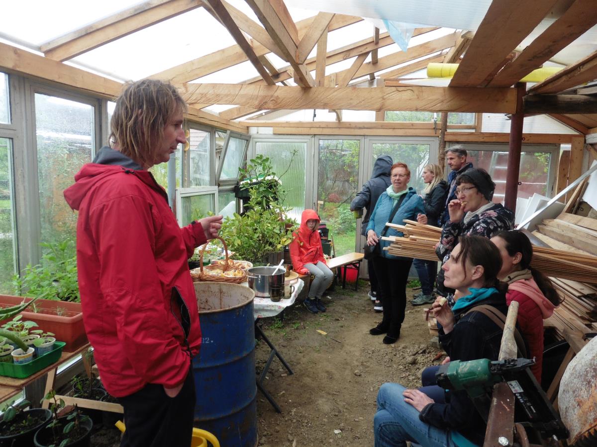 V soboto, 13.5., smo imeli dan odprtih vrat in kljub slabem vremenu se je zbralo kar nekaj ljudi. Lepo je bilo videti kako nekateri cenijo naše delovanje in ustvarjanje. Ob prikazu posestva, rastlinjakov, sadovnjaka, zelenjavnega in zeliščnega vrta ter slamnate hiše, smo debatirali o vsem sedanjem dogajanju in kako pomembno je biti čimbolj samooskrben. Med obiskovalci so bili tudi nekateri, ki se še spominjajo kako je bilo včasih, ko so ljudje marljivo obdelovali zemljo in kupili le najbolj nujne potrebščine. Takrat so bili ljudje veliko bolj zdravi in brez vseh zdravil. Sedaj pa imamo polne mize vsega, vendar se veliko temu sploh ne more reči hrana ampak mašilo. Ljudi je presenetilo koliko vsega je nasajenega, kako čudovito (rodovno) posestvo nastaja pri nas in kako ustvarjamo z reciklažo. Malo smo se tudi podložili s taščinimi dobrotami, žena Janja pa je pripravila zeliščni čaj in nekaj naših izdelkov (mazila, mila, deodorante, sadike zelišč in aloe vere, marmelade, leseni glavniki, knjiga Mesto luči, ki jo je napisala prijateljica po navdihu našega načina življenja). Lepo je deliti z ljudmi naše ustvarjanje in videti, da nas vedno več vidi, da je živeti sonaravno ključ za naše preživetje.