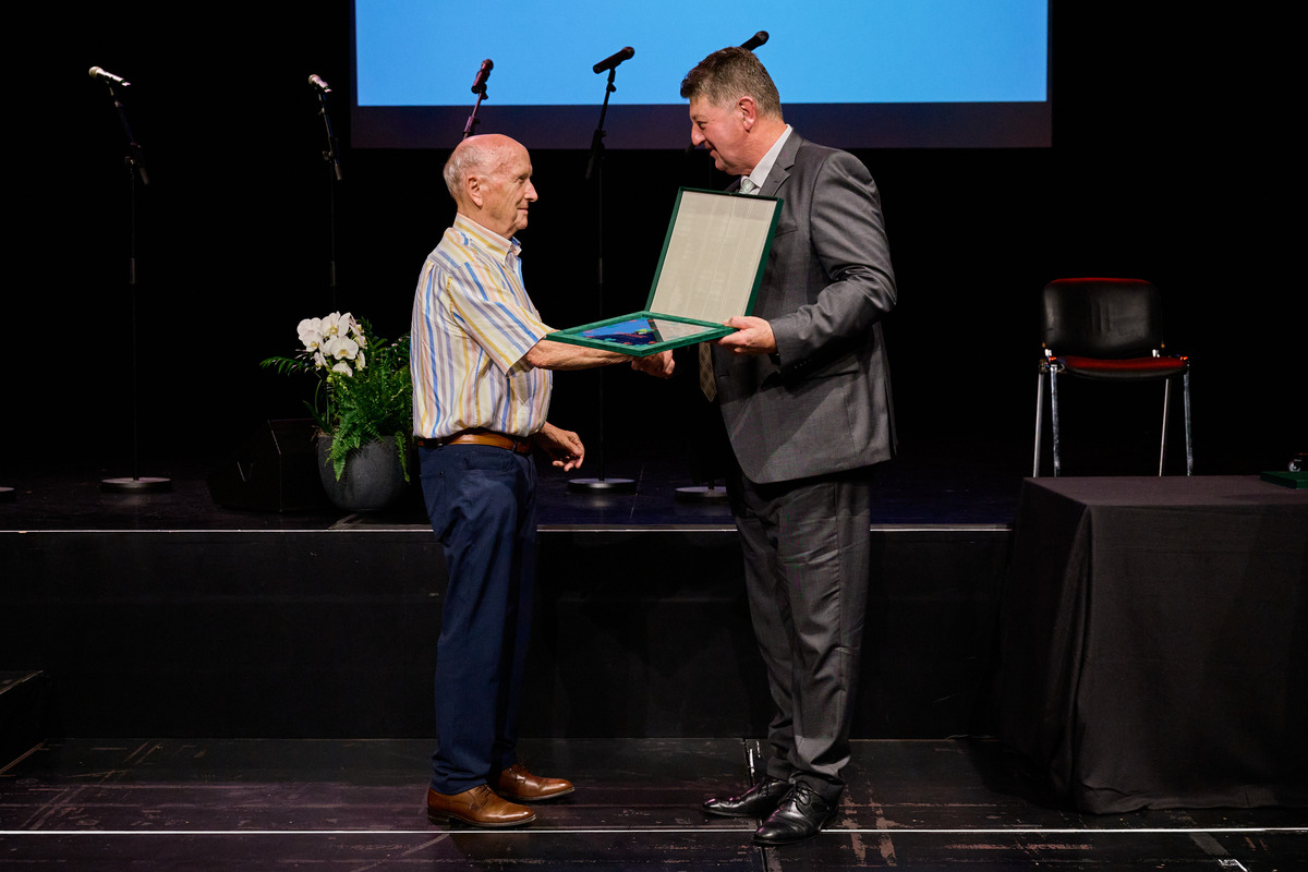 Na slavnostni seji so bila podeljena najvišja občinska priznanja in spominske plakete. Občinski svet Občine Šentjernej je naziv častni občan v letu 2025 podelil Radku Luzarju in sicer za izjemen prispevek k razvoju občine Šentjernej na gospodarskem, športnem, družbenem in humanitarnem področju ter za prispevek k njenemu ugledu in promociji. Častni občan je poleg listine o podelitvi naziva prejel tudi umetniško delo Primoža Puglja »Občan«, ki poudarja človeški obraz in simbolizira pomembnost vsakega posameznika. V nagovoru se je novi častni občan predlagateljem in občinskemu svetu zahvalil za prejeti laskavi naziv.