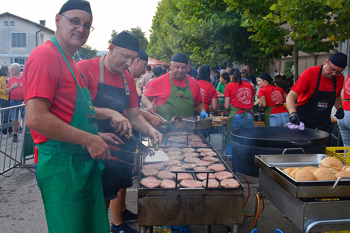 Dogajanje pod prireditvenim šotorom pri Kulturnem centru Primoža Trubarja je privabilo številne obiskovalce, ki so uživali ob odlični kulinariki in glasbi. Za sveže pripravljene burgerje in hladno pivo je tudi letos poskrbela uigrana ekipa Pihalnega orkestra Občine Šentjernej, ki je tokrat svoje inštrumente zamenjala za kuhalnice – in tudi te vihtela z enako mero spretnosti in entuziazma.