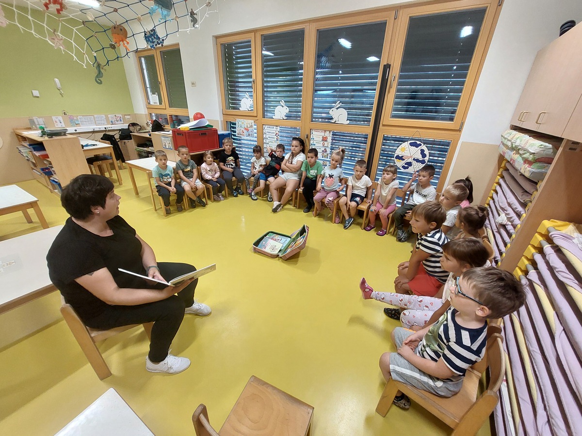 Včeraj, 16. septembra, je knjižničarka Sabina iz Knjižnice Šentjernej obiskala Vrtec Čebelica, in sicer so v skupinah Sovice in Škratki poslušali pravljico o Šibazajcu, ki se mu je zelo mudilo v mesto, kjer ga je že čakala zajčica Tačka. S kolesom je Šibazajec dirjal čez gozd in pot nadaljeval po mestu, kjer ga je ustavil policist. Le kaj mu je policist povedal? Da je bilo druženje še bolj zanimivo, je vsak otrok izdelal svoj avtobus.