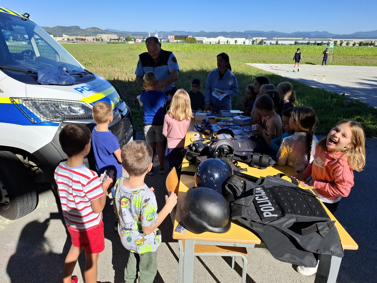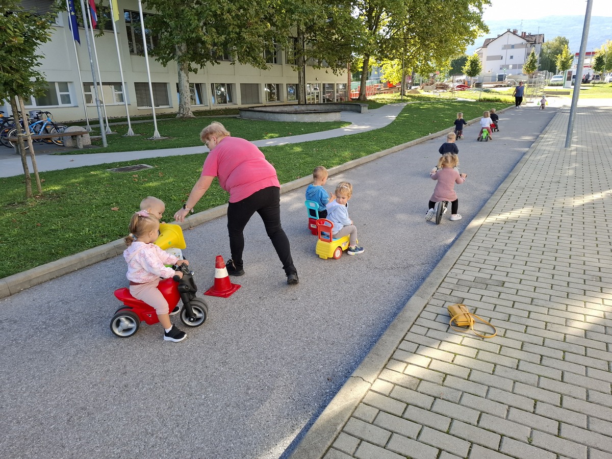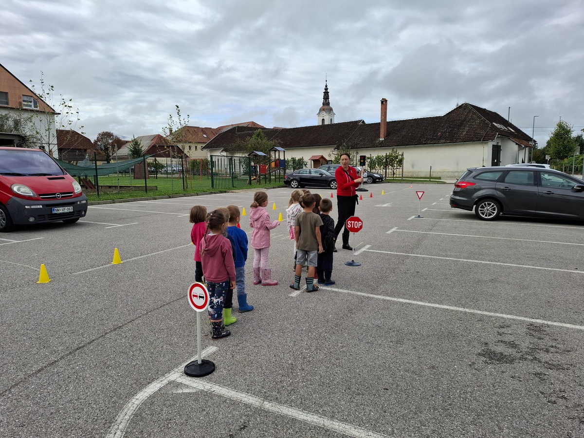 Naslednji dan pa je bil namenjen prometu - predstavili so se policisti, gasilci, reševalci in redarji. Otroci so z velikim zanimanjem od blizu spoznali njihovo delo, pristojnosti, odgovornosti in opremo. Nekaj te so lahko tudi preizkusili. V vmesnem času se je nekaj skupin iz vrtca podalo tudi na obisk Policijske postaje Šentjernej, še drugi dan pa se je nadaljeval kolesarski poligon. Zelo poučen in zanimiv dan na ulici. Iskrena hvala vsem sodelujočim ustanovam: Policijska postaja Šentjernej, PGD Mokro Polje, ZD novo mesto, Medobčinski inšpektorat in medobčinsko redarstvo Skupne občinske uprave občin Dolenjske in Bele krajine.