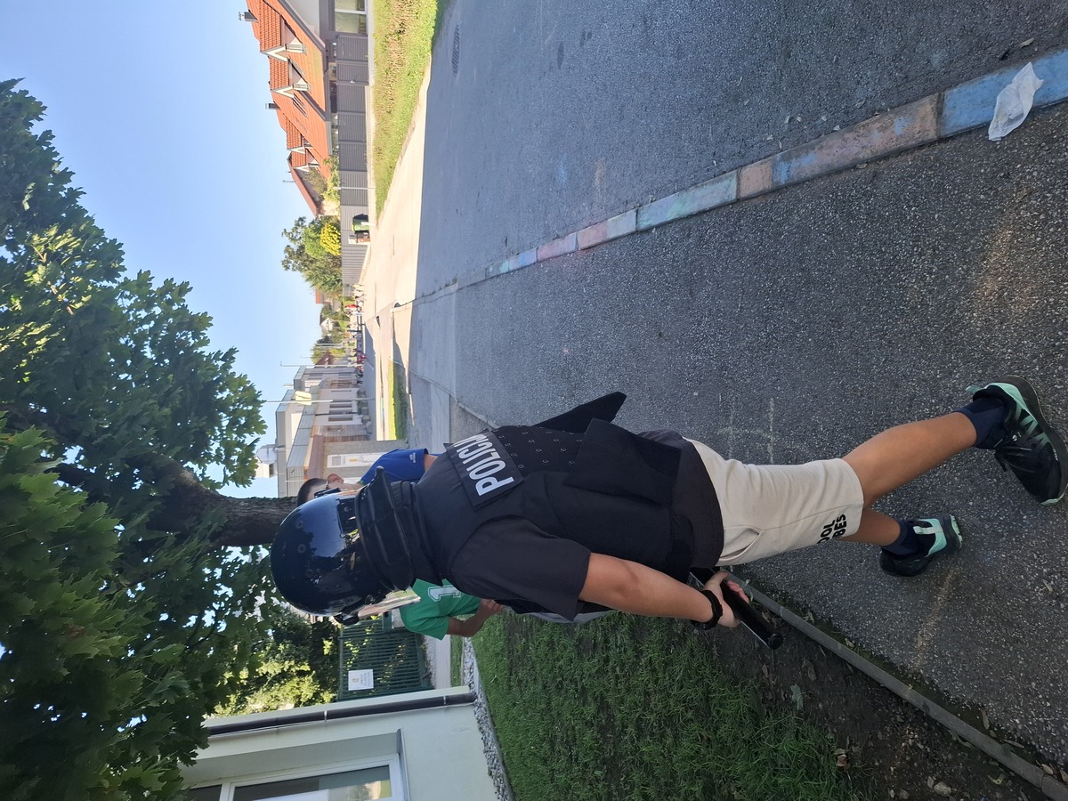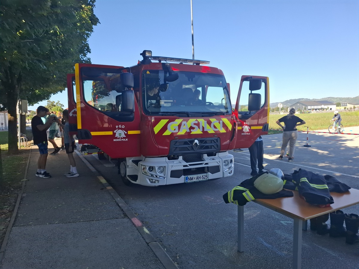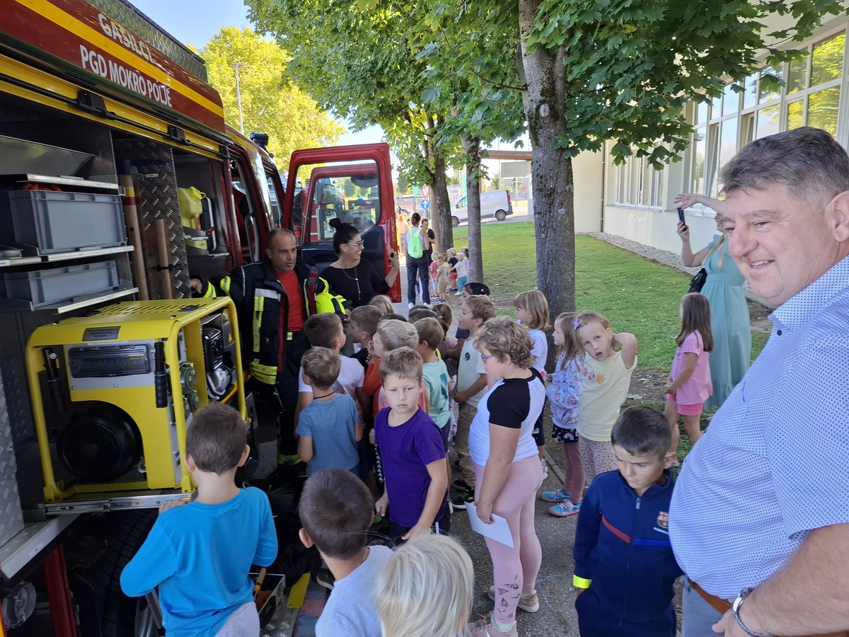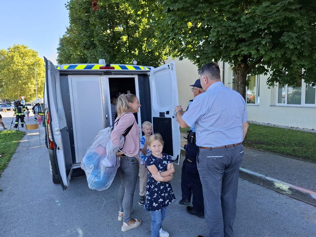 Naslednji dan pa je bil namenjen prometu - predstavili so se policisti, gasilci, reševalci in redarji. Otroci so z velikim zanimanjem od blizu spoznali njihovo delo, pristojnosti, odgovornosti in opremo. Nekaj te so lahko tudi preizkusili. V vmesnem času se je nekaj skupin iz vrtca podalo tudi na obisk Policijske postaje Šentjernej, še drugi dan pa se je nadaljeval kolesarski poligon. Zelo poučen in zanimiv dan na ulici. Iskrena hvala vsem sodelujočim ustanovam: Policijska postaja Šentjernej, PGD Mokro Polje, ZD novo mesto, Medobčinski inšpektorat in medobčinsko redarstvo Skupne občinske uprave občin Dolenjske in Bele krajine.