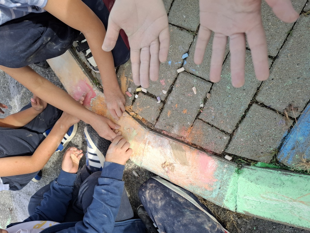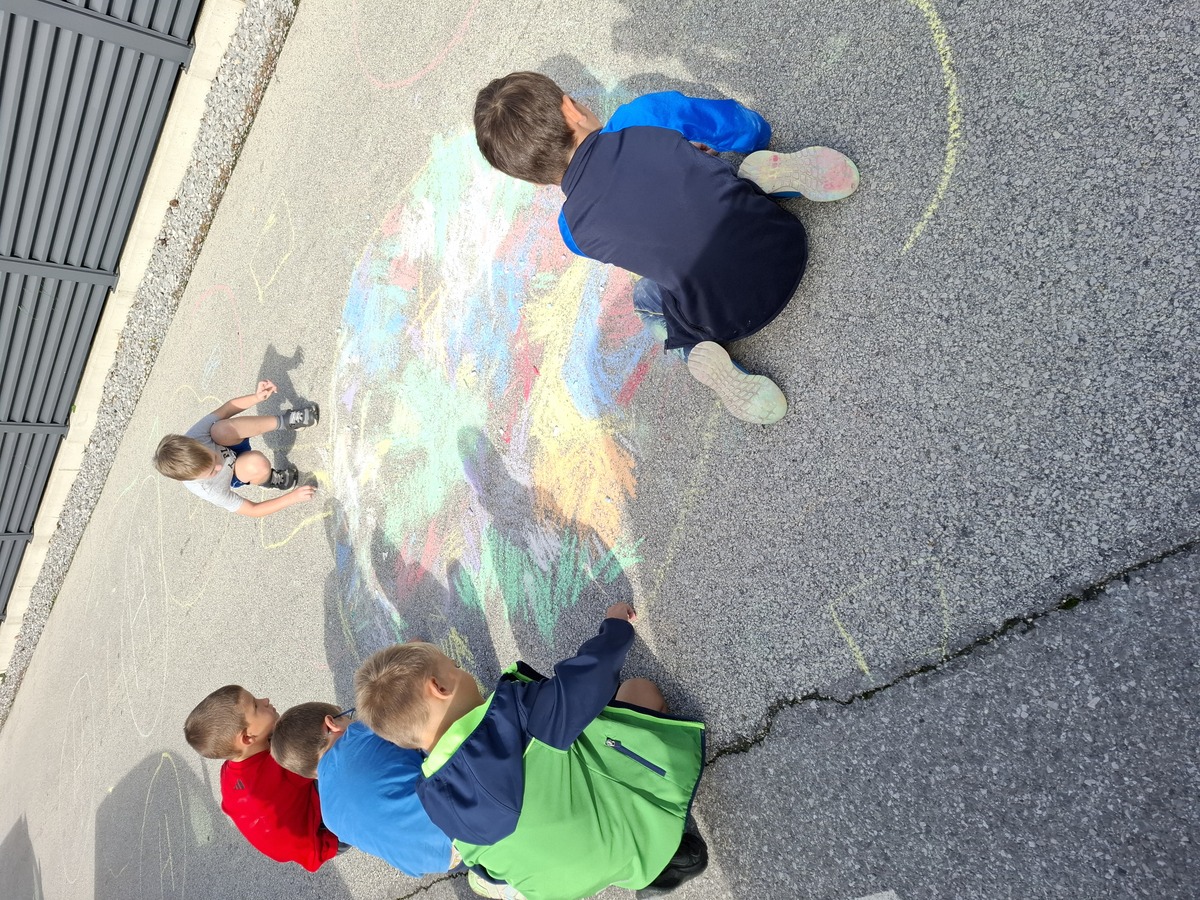 Prvi dan so otroci s kredami porisali cesto, dodali nove prehode za pešce, se igrali, lovili in se preizkušali v kolesarskem spretnostnem poligonu.